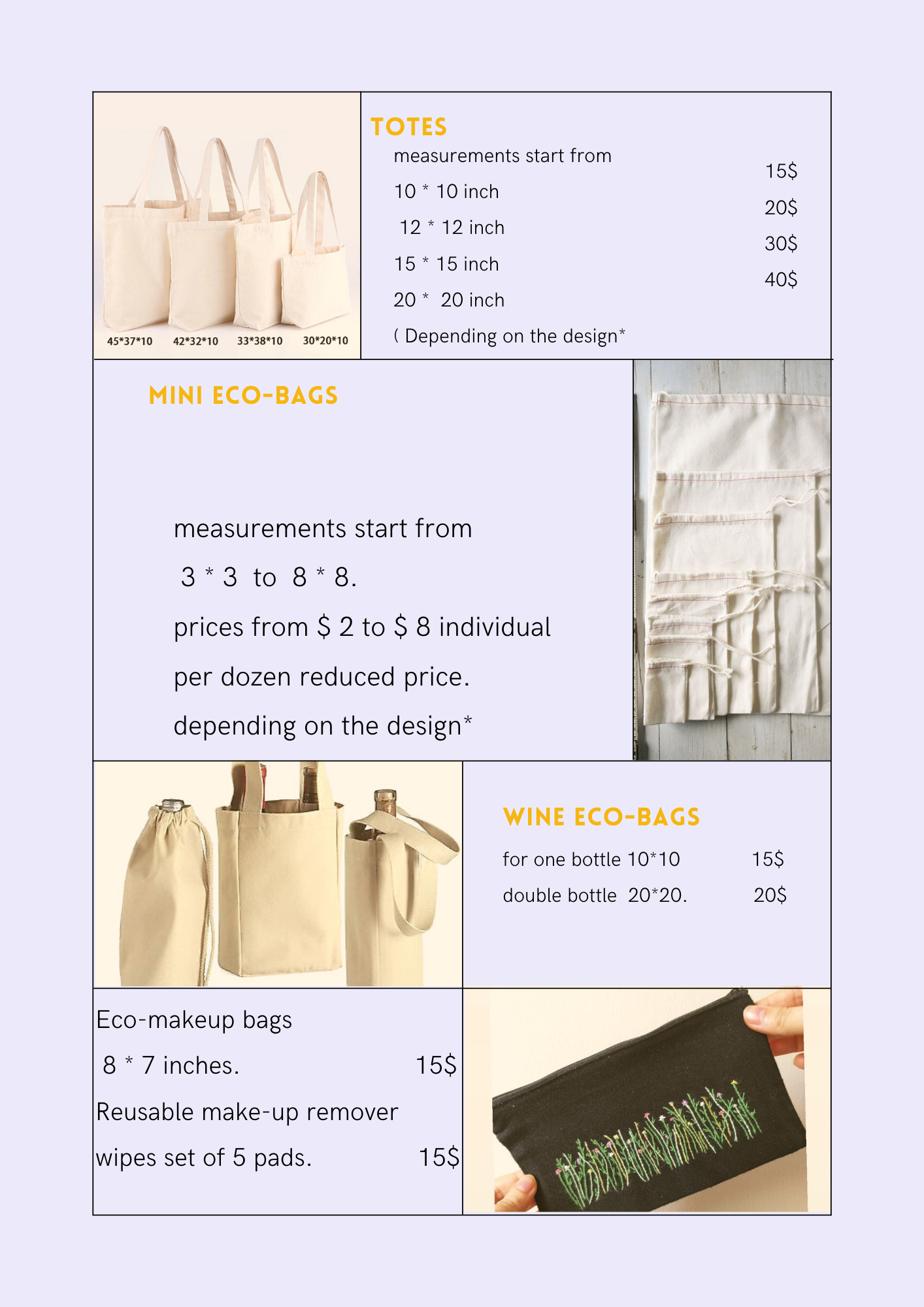 Manufacturers of ecological bags of any size and design with embroidery 100% handmade with love. to be able to give our planet a little respite by avoiding the consumption of the plastic bag.